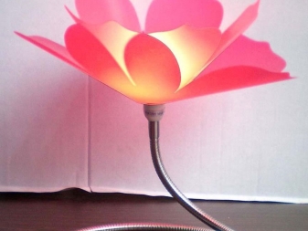 Eine Stehlampe in diesem Stil kann einem riesigen Lotus mit einem geflochtenen Stiel eines Stativs und einer Blumenschale im Lampenschirmdekor ähneln. Dies ist ein einzelnes Beispiel, und in der Natur gibt es eine riesige Auswahl an Pflanzenoptionen und Farbkombinationen.