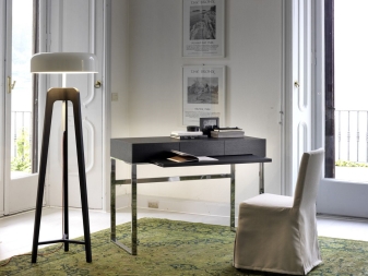 Stehleuchten sind funktioneller als Desktop-Lampen, da sie nicht nur den Bereich auf dem Tisch, sondern auch den Raum darunter und darüber beleuchten können. Sie sind ein eigenständiger Teil des Designs und sind in der Lage, mit ihrem eigenen Erscheinungsbild dem Raum einen gewissen Charme zu verleihen.
