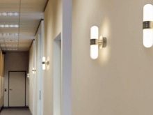 Die ideale Option ist es, einen schmalen Gang mit einer Wandleuchte oder einem Paneel zu beleuchten.Es ist wunderschön, originell und nimmt fast keinen Platz ein.