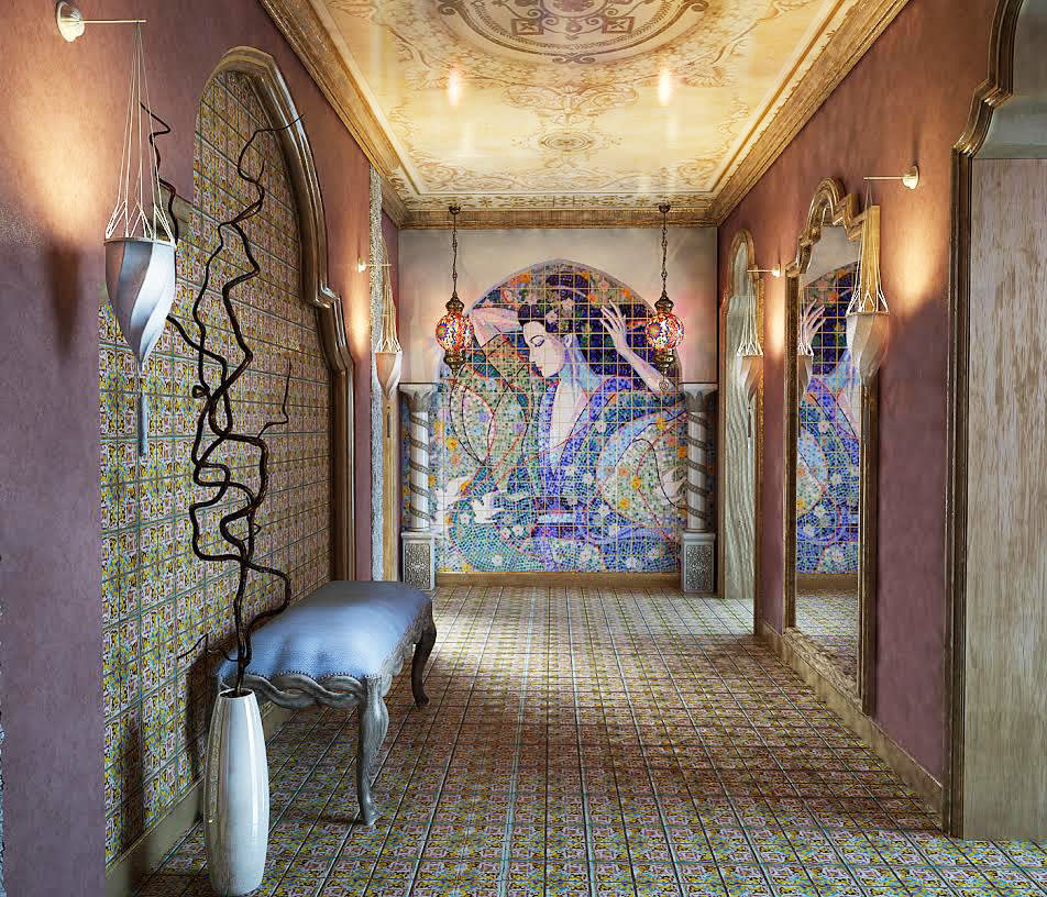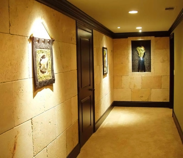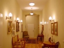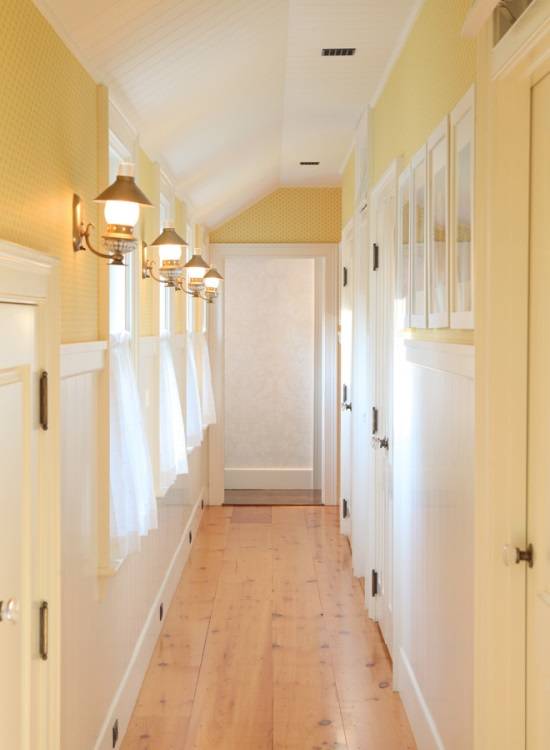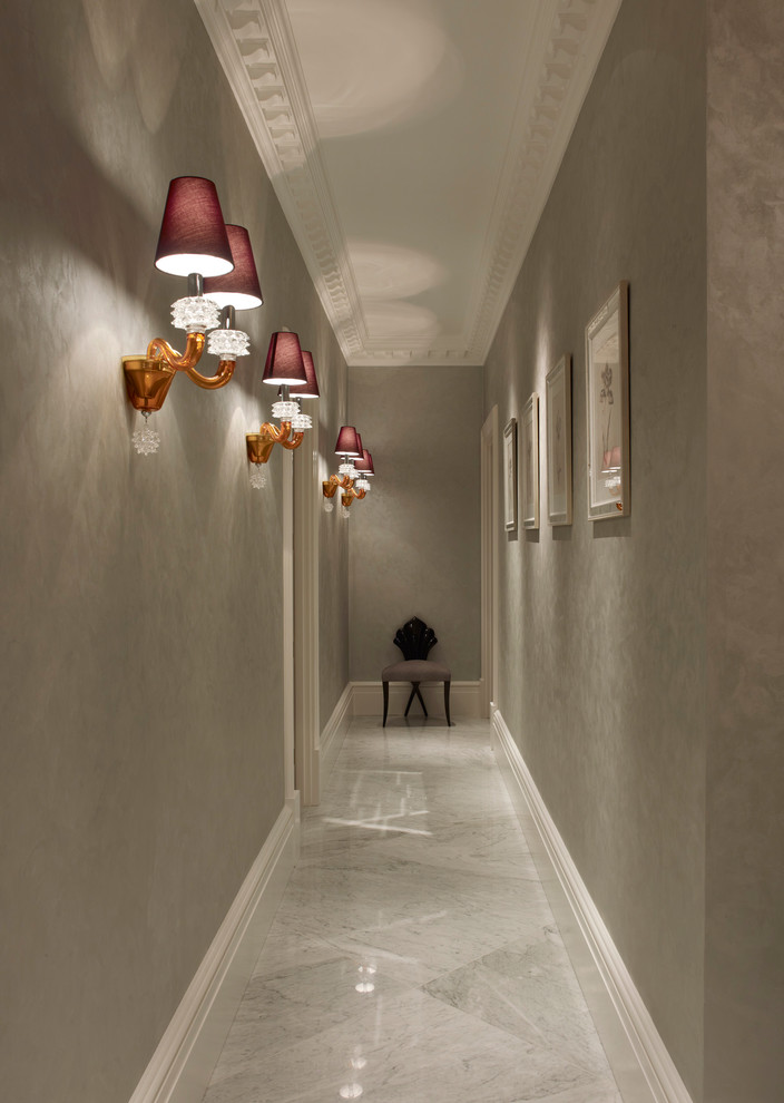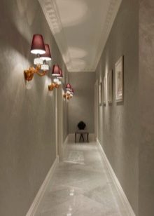 Wenn der Korridor sehr eng ist, hängen Wandleuchter an einer der Wände.