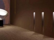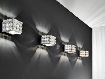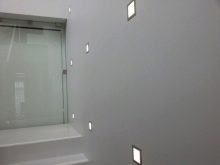 Deckenleuchten und Wandlampen Fantasie ist nicht begrenzt. Einbauleuchten, die direkt in die Wände montiert werden, sind heute sehr beliebt. Mit ihrer Hilfe können Sie einen sehr interessanten Effekt erzielen, wenn viele leuchtende Punkte auf der Wand erscheinen. Sie sind ideal für die einfache Beleuchtung des Korridors oder der Treppe in der Nacht.