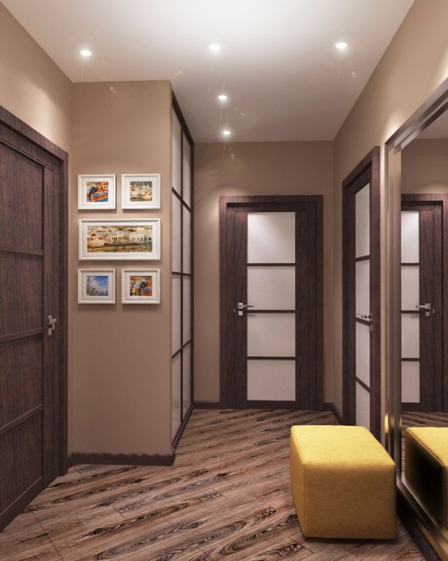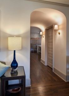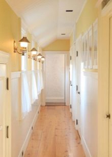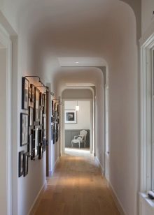 Wie Experten empfehlen, ist es ideal, wenn Sie tagsüber mit eingeschalteten Lampen den Korridor entlang laufen können und es sich im Flur nicht leichter fühlen wird als im Raum. I.e.Sie müssen versuchen, ein Gleichgewicht in der Helligkeit zu erreichen, so dass das Licht bei der Bewegung von Raum zu Raum Ihre Augen nicht verletzt.