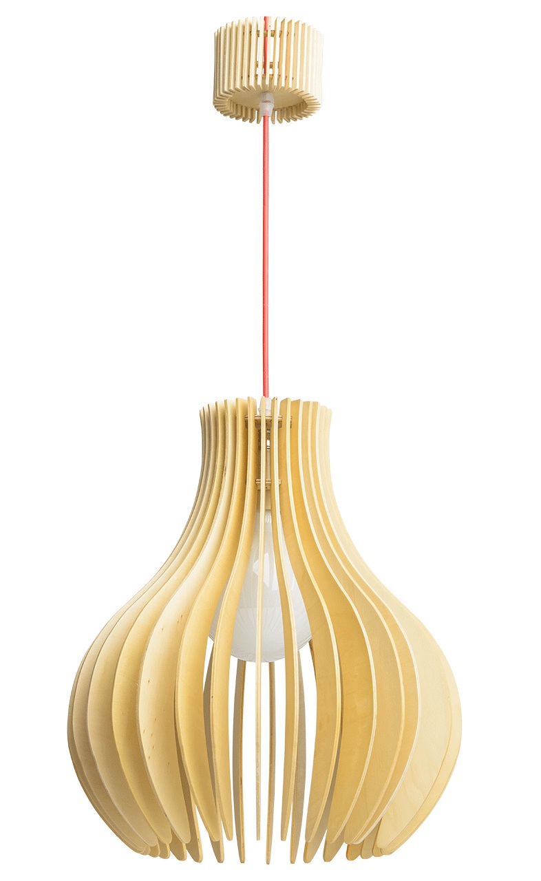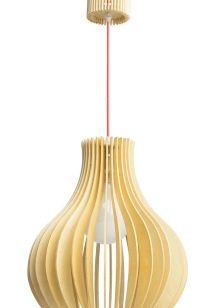 Leuchten mit Holz Sie kommen nicht aus der Mode, sie tragen die positive Energie von natürlichem Holz und ihr Design kann von Imitation altmodischer Muster bis hin zu topaktuellen Formen variieren. Dieses Material ist wunderbar mit Metallkonstruktionen kombiniert.