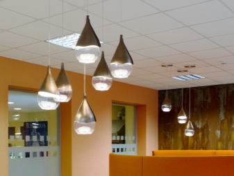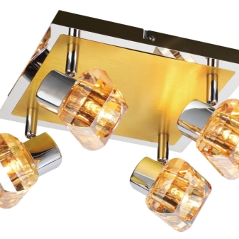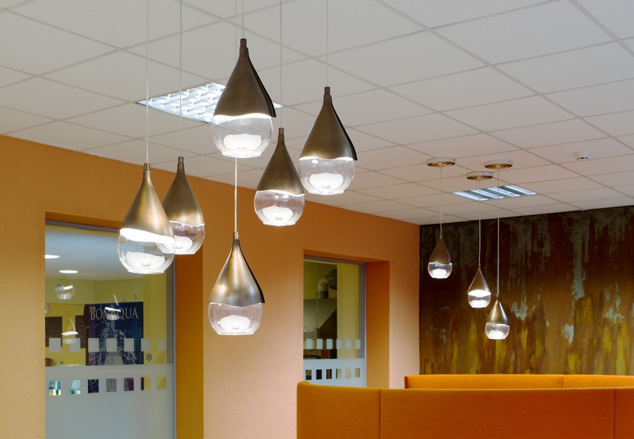 - Deckenmodelle - an der Decke hängend, sind sie abgehängt und versenkt, für die Allgemeinbeleuchtung (Einzelleuchten und Kronleuchter) oder für Richtstrahler (Spot-Systeme);