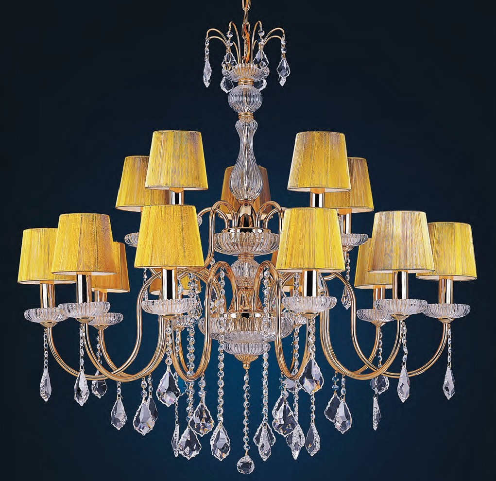 Eine eigene Nische in der hohen Preiskategorie belegen Kristall-Kronleuchter und WandlampenZum Beispiel von der Firma Wunderlicht. Luxuriöse Statusmodelle verwenden hochwertige Kristalle, die mit moderner Technologie poliert und geschnitten werden. Die Anwendung von Blattgold verleiht Exklusivität.