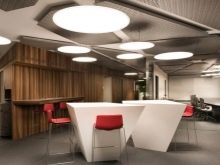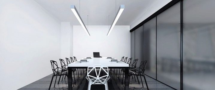 - Für das Büro. Bei der Auswahl der Beleuchtung für ein Bürogebäude können Sie ein lineares Modell für die Kabel wählen, das häufig für industrielle Zwecke verwendet wird, sowie für Ein-Lampen-Leuchten. Futuristische und ungewöhnliche Deckenlampen an den Außenwänden. Sie beleuchten den Raum gleichmäßig und sehen sehr ästhetisch aus, da die Kabel und Leuchten in der Wand versteckt sind.