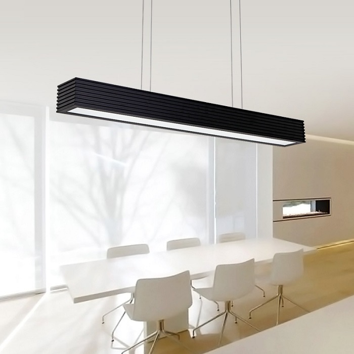 Diodenbeleuchtungsvorrichtungen sind im täglichen Leben weit verbreitet. Insbesondere werden Pendelleuchten häufig zur Beleuchtung großer Räume mit hohen Decken, beispielsweise in der Fertigung oder in einem Lagerhaus, verwendet. In der Werkstatt ist es sehr wichtig, eine gute gleichmäßige Beleuchtung für sicheres und bequemes Arbeiten zu haben. Die Produktion findet fast immer in größeren Räumen statt, die mit herkömmlichen Deckenleuchten nur schwer zu beleuchten sind. Daher kommen LED-Linearlampen an den Kabeln zum Einsatz.