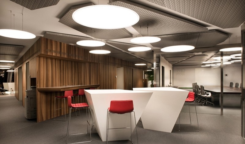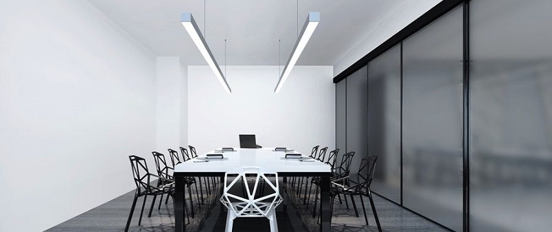 Die gesamte Bürofläche braucht auch eine kompetente Beleuchtung. Am besten kauft man einen LED-Anhänger im Büro, der an der Decke befestigt ist. Es wird keinen Platz auf den Schreibtischen der Mitarbeiter einnehmen, sondern eine gleichmäßige Beleuchtung und angenehme Arbeitsbedingungen bieten.