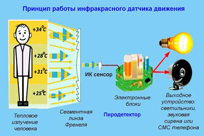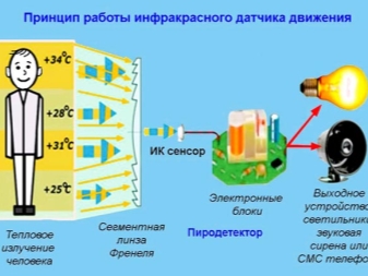 Die Arbeit von Leuchten mit Bewegungssensor basiert auf der automatischen Reaktion auf bewegte Objekte. Diese Eigenschaft erklärt sich durch die Tatsache, dass das Gerät über einen eingebauten Sensor verfügt, der jede Temperaturänderung sowie geringe Schwankungen der Luft und Veränderungen der Hitzewellen erkennt. Als Folge wird das Relais ausgelöst, wenn eine Person in einem bestimmten Bereich erscheint und das Licht automatisch aufleuchtet. Wenn es keine Bewegung gibt, ist der Stromkreis unterbrochen und die Beleuchtung ist ausgeschaltet.