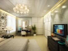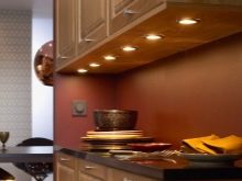 Es lohnt sich auch, ein paar Grundregeln für die Platzierung von Lampen zu betrachten. Erstens müssen sie mindestens 20-30 Zentimeter von der Wand entfernt sein. Zweitens, wenn zusätzlich zu den Scheinwerfern auch ein Kronleuchter verwendet wird, dann sollte er in der Mitte des Raums oder näher an dem Arbeitsbereich im Raum platziert werden, und die Strahler werden ein zusätzliches Licht sein.