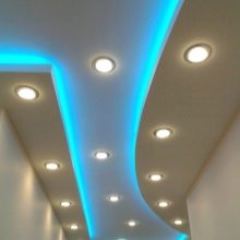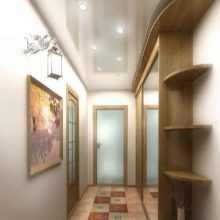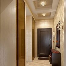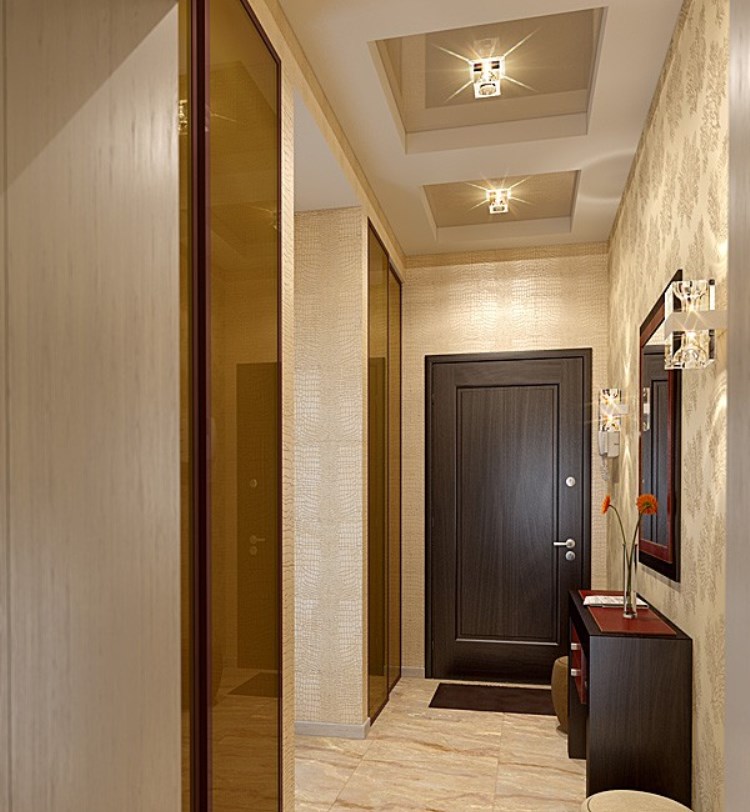 - Im Korridor ist es besser, die Strahler mit einer geraden Linie in der Mitte oder einem Paar gegenüber zu platzieren, da der Korridorraum oft schmal und länglich ist.
