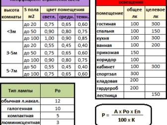 Das erste, was zu tun ist, berechnen Sie die Deckenfläche (multiplizieren Sie die Länge mit der Breite, zum Beispiel, wenn die Breite 4 m und die Länge 5 ist, dann ist die Fläche 20 m2). Dann lernen wir gemäß den Bauvorschriften die vorgeschriebene Mindestbeleuchtung des Raumes.