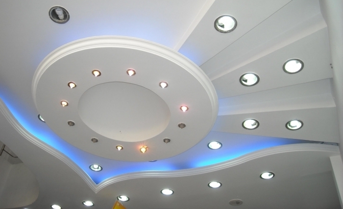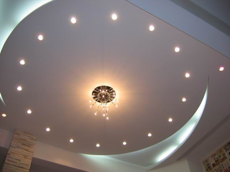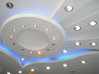 Wenn die Decke aus Trockenbau besteht, gibt es keine besonderen Schwierigkeiten und Regeln für die Installation. Die Hauptsache ist, die Plätze für zukünftige Scheinwerfer richtig zu berechnen und die Größe des Bohrers richtig zu wählen. Ansonsten ist es wahrscheinlich, dass das Loch für die ausgewählten Lampen zu groß ist und sie einfach herausfallen.