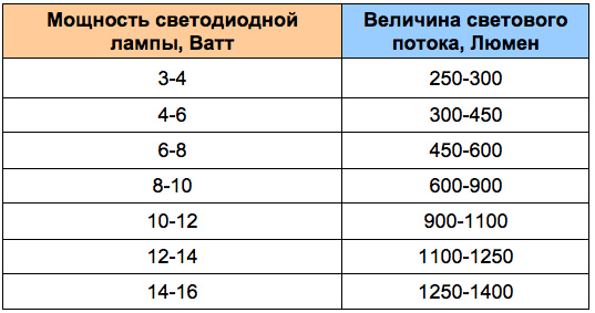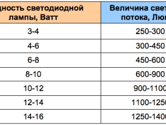 Jede LED-Lampe hat auf der Box eine Beschreibung ihrer Eigenschaften, nämlich die genaue Menge des emittierten Glühens. Je mehr Leistung angezeigt wird (6 W oder 10 W), desto heller leuchtet das Licht. Dadurch können Sie die erforderliche Zahl herausfinden - die Anzahl der Lampen pro Quadratmeter.
