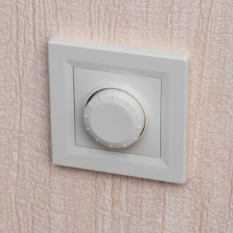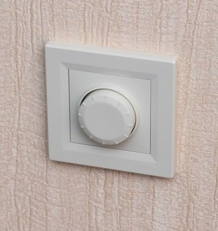 - Mechanisch. Es sieht aus wie ein in der Wand montierter Schalter, nur dass anstelle eines Knopfes ein Rad rotiert, das die Helligkeit der Beleuchtung im Raum verändert. Sehr einfach und praktisch zu bedienen.