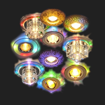 In der Form können sie rund, quadratisch, dreieckig oder asymmetrisch sein, alles hängt von den Vorlieben des Käufers ab. Auch Lampen und unterscheiden sich in der Lage der Glühbirne selbst darin. Es kann eingebaut oder hervorstehend sein. Meistern wird empfohlen, die zweite Position zu wählen, da der Beleuchtungswinkel größer ist. Was das Material betrifft, kann der Körper aus Metall, Kunststoff, Glas oder Gips bestehen.