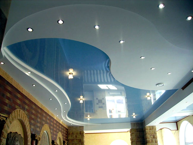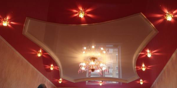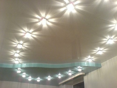 Schon von dem Namen her kann man verstehen, dass die Lampen die Oberfläche überlagern. Diese Art der Installation eignet sich für Betondecken, Dehnungs- oder Gipskartonplatten. Es stellt sich heraus, dass die Befestigung nicht an der Leinwand selbst, sondern direkt darunter an den Befestigungselementen in der Decke erfolgt.