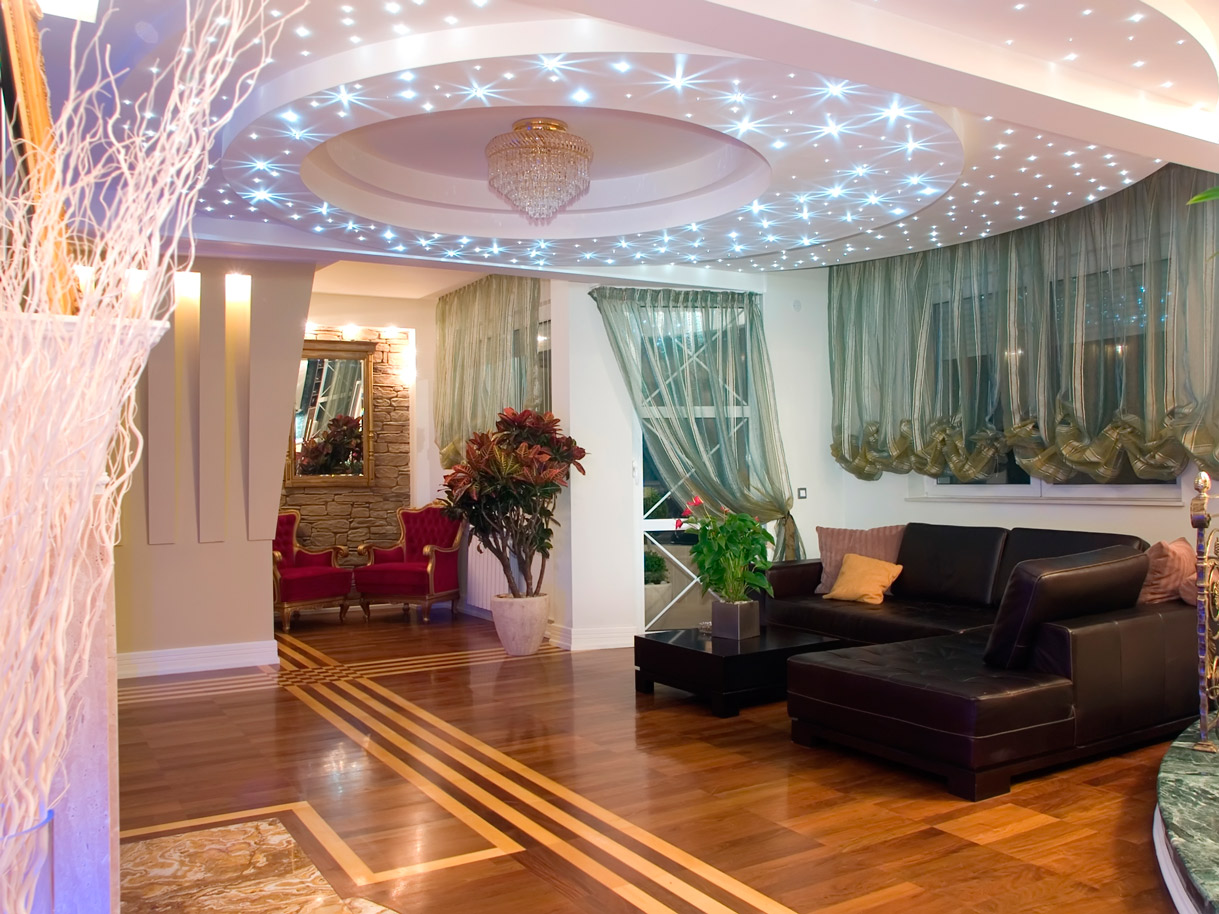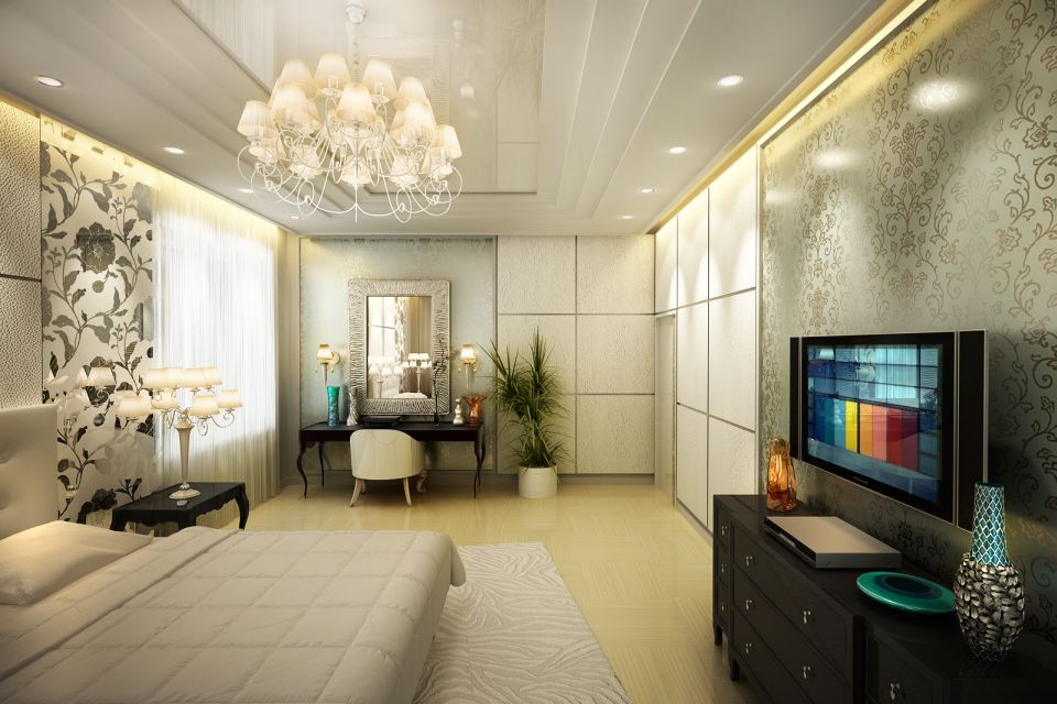 - Das Schlafzimmer wird schön wellenförmig oder kreisförmig angeordnet sein und Sie können nur den Bereich auswählen wo sich das Bett befindet, da eine besonders helle Beleuchtung im Schlafzimmer nicht erforderlich ist.