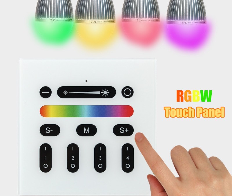 - Auf Touch-Steuerung. Dieses Design ist etwas kompliziert durch das Vorhandensein eines Touchscreens, der auch an der Wand befestigt ist. Um den Lichtstrom zu ändern, müssen Sie das Touchpanel berühren und auf die gewünschte Leistung klicken. In der Regel ist diese Option teurer als mechanische, aber es sieht sehr nett und prägnant aus.