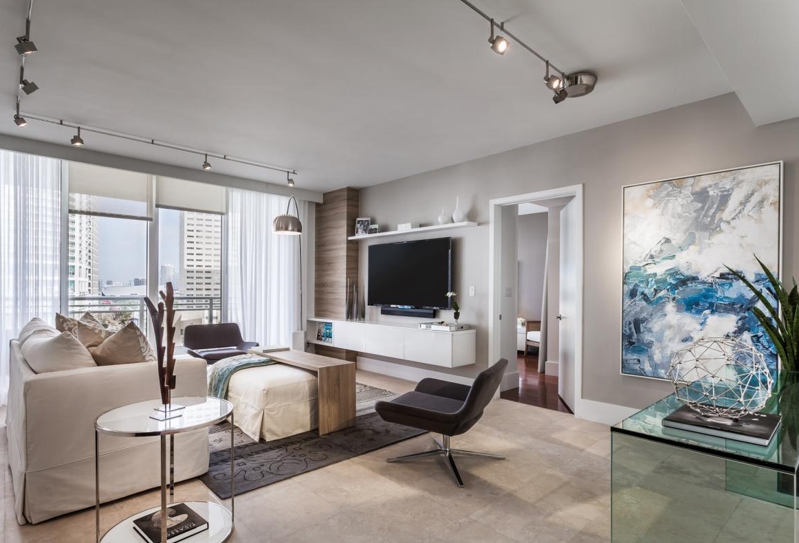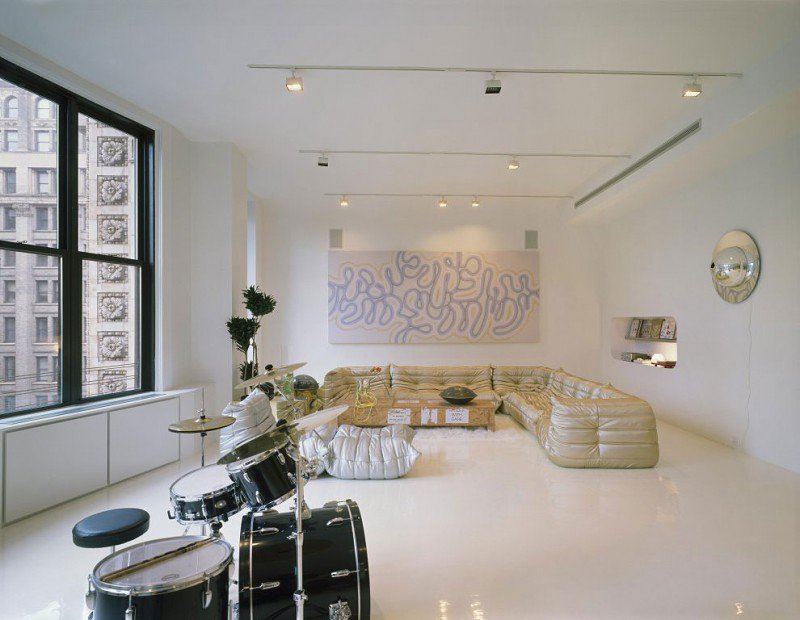 - Das gemütliche Wohnzimmer in hellen Farben ist durch diese Beleuchtung noch attraktiver und zarter geworden. Weiße Strahler kleiner Größe direkt an der Decke fokussieren das Licht nicht an einer Stelle, sondern verteilen es gleichmäßig im Raum.Ihre Farbe entspricht voll und ganz der allgemeinen Farbgebung des Wohnzimmers und verleiht ihr einen besonderen Komfort und Wärme.