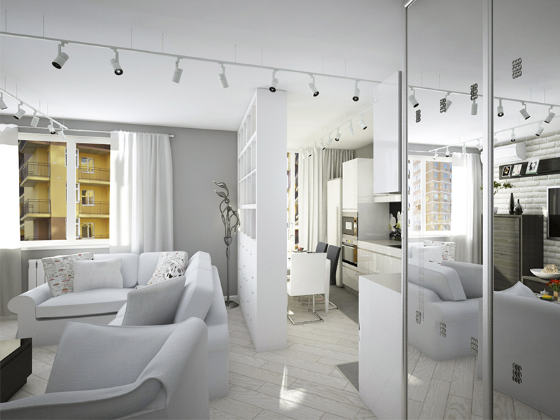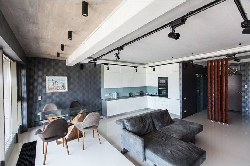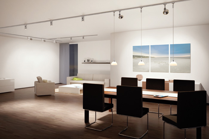 Viele Innenarchitekten setzen diese Geräte heute auch aktiv in ihrer Arbeit ein, denn Schienenleuchten helfen, den gesamten Raum einer Wohnung schnell und einfach in mehrere separate Zonen zu unterteilen.