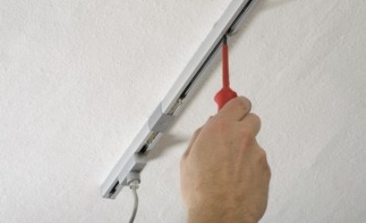 - Stromausfall im ganzen Raum. Dies ist notwendig für die sichere Demontage vorhandener Beleuchtung und die ordnungsgemäße Installation von Gleisanlagen.