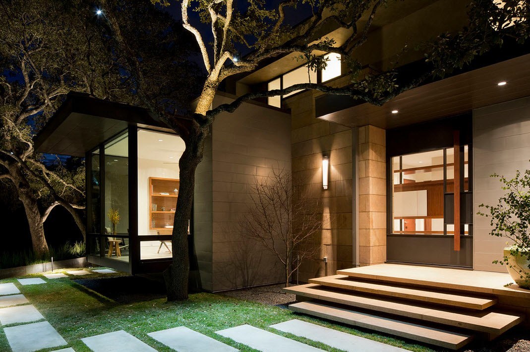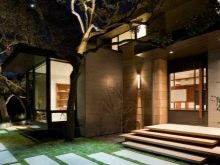 Für außen im modernen Stil Es wird nicht akzeptiert, Wandbeleuchtung zu verwenden, bevorzugt werden Deckenmodelle. Es gibt jedoch einige Nuancen. Die einfachste runde Wand "Tablette" von einem interessanten minimalistischen Design wird das Äußere dieses Stils perfekt ergänzen und es erlauben, mit neuen Farben zu spielen.