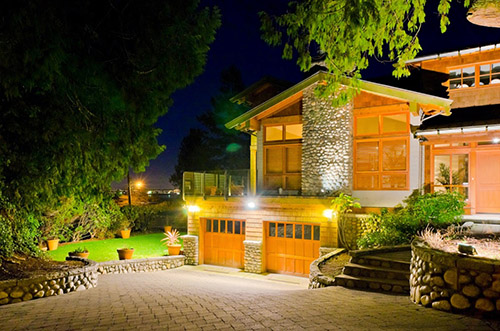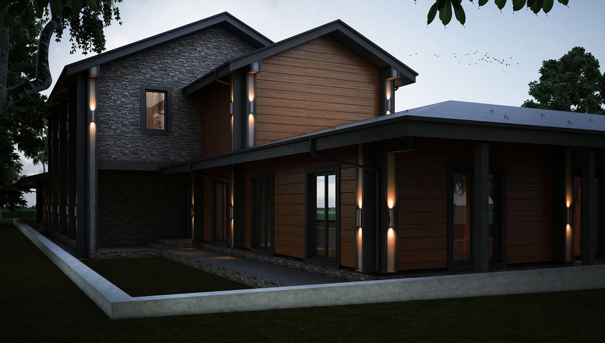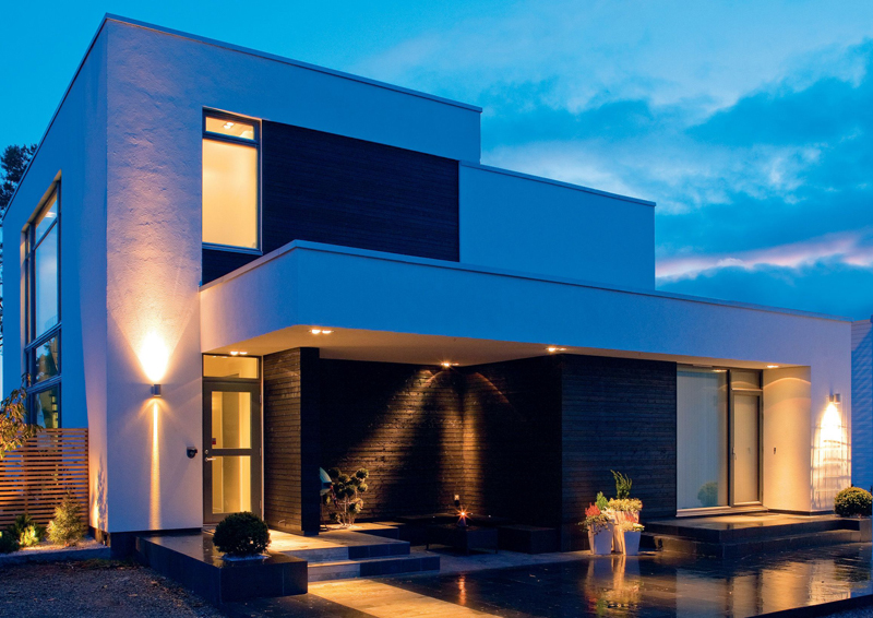 Durch die Wandlampen können die Beleuchtung des Kellers und ein Schild mit der Adresse des ausgeführten Landhauses sowie ein Springbrunnen durchgeführt werden.