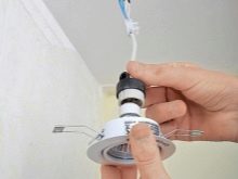 Trotz der Tatsache, dass heute eine Vielzahl von Lichtquellen im Angebot ist, ist ihre Installation auf dieser Art von Decke, sowie die Verbindung fast immer identisch.