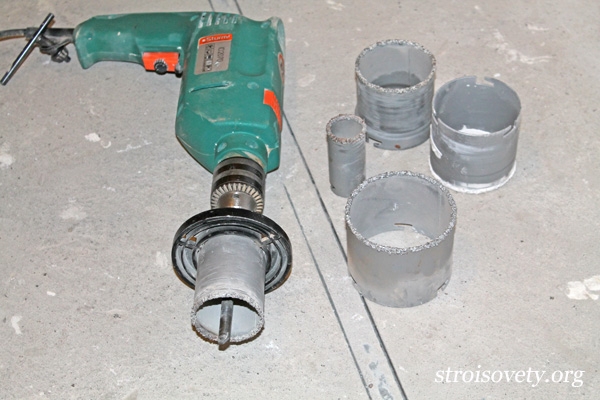 Dank dieses Arbeitsschemas können Sie einen Kronleuchter in die Decke oder eine gewöhnliche Lampe stellen. Beachten Sie jedoch, dass nicht jedes Material dem Arbeitsdruck standhalten kann. Daher muss der Prozess der Organisation des Lochs sehr sorgfältig durchgeführt werden.