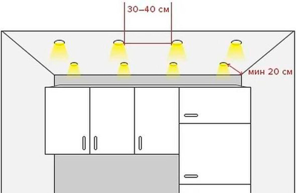 Darüber hinaus sollte das Design berücksichtigt auch die Tatsache, dass der Abstand von der Wand auf die Lichtquelle mehr als 0,6 m sein. Wenn Sie ein Projekt machen, denken Sie über alle Nuancen nach, wie die Drähte, Schalter, natürlich Lampen lokalisiert werden. Dies vereinfacht die Selbstinstallation.Achten Sie auch darauf, dass jede Lichtquelle an ein separates Kabel angeschlossen werden muss.