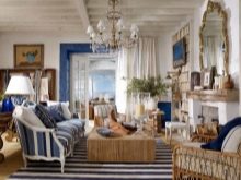 Sehr oft wird ein Raum mit dem Kontrast eines reichen Blaus oder Blau und Weiß geschmückt, und wird auch mit Zubehör in einem maritimen Thema ergänzt. Die Wände sind meistens mit Gips oder grober Technik, die einem natürlichen Stein ähneln, beendet. Die gleichen Techniken werden im griechischen Stil verwendet, aber Accessoires können luxuriöser sein und an kunstvolle Statuen und Basreliefs der Antike erinnern.