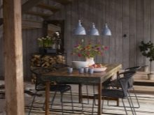 Rustikal Stil, oder rustikal, hält sich an die gleichen Prinzipien. Es ist jedoch eine minimalistische und zurückhaltende Farbpalette. Es wird angemessen sein, basische Low-Key-Geräte, die viel Licht werfen, aber nicht viel Aufmerksamkeit auf sich ziehen. Sie können sogar integrierte Modelle anwenden.