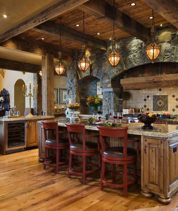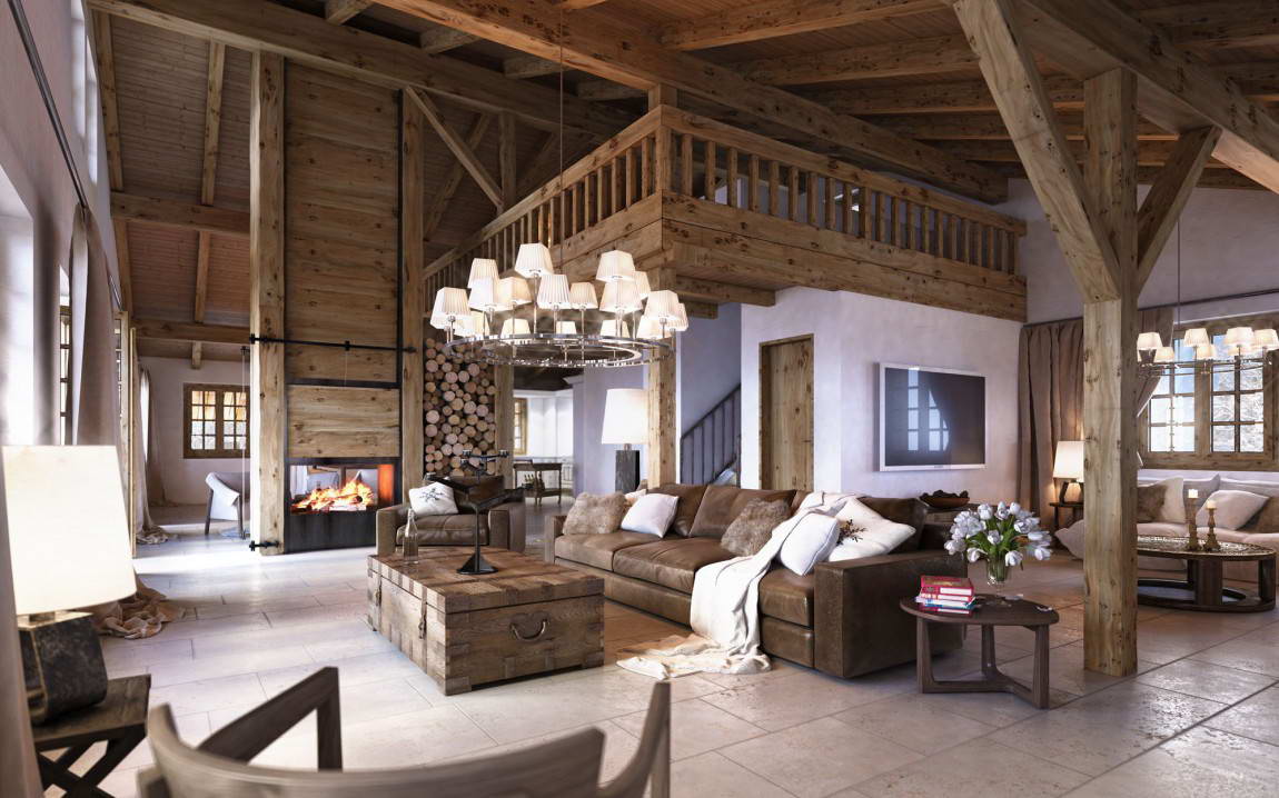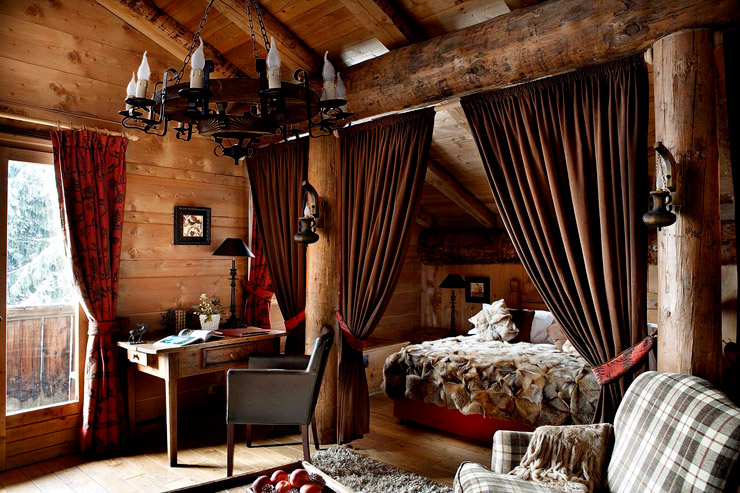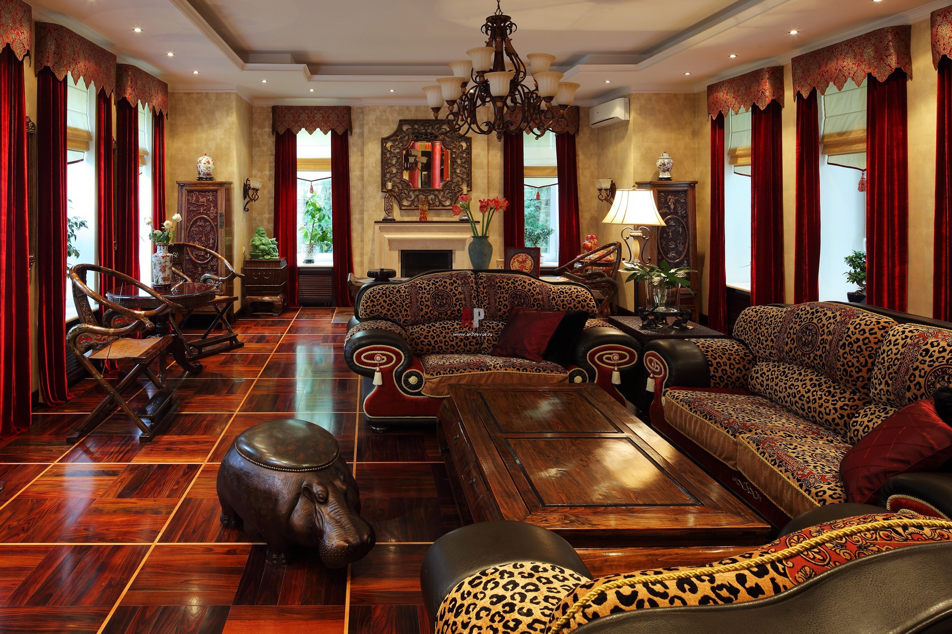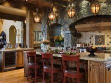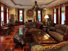 Die Häuser in diesem Stil verwenden viel teures geschnitztes Holz, Naturstein und Leder. Ungewöhnliche Trophäen aus exotischen Ländern werden ein solches Interieur perfekt ergänzen, zum Beispiel afrikanische Masken oder schwarze Keramikfiguren. Eine Sammlung antiker Accessoires, wie antikes Geschirr oder Puppen, wird harmonisch aussehen.