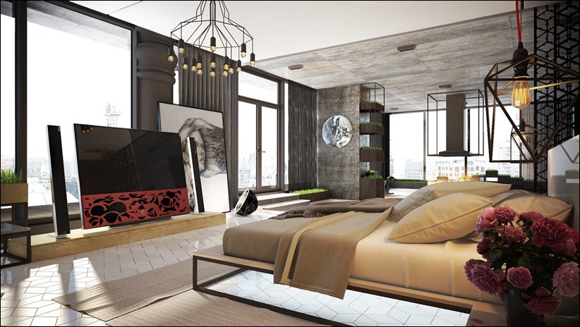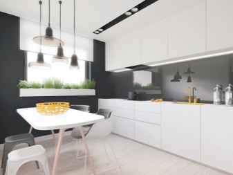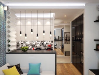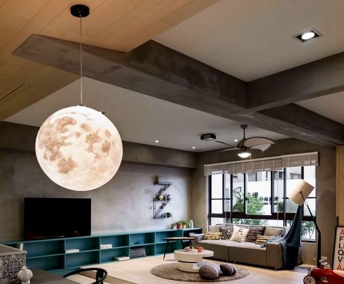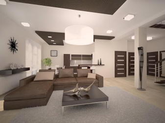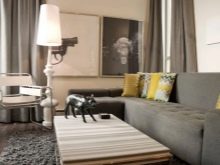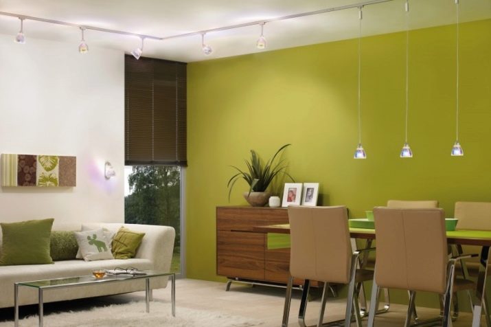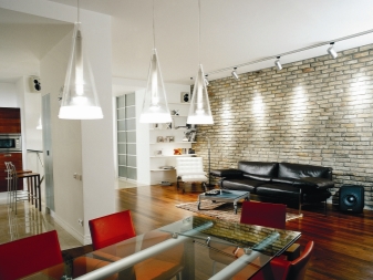 Sie können in einem Raum einfache einlampige Kronleuchter im Stil von High-Tech oder Industrie hängen. Passen auch eingebaute Lampen, Stehlampen.