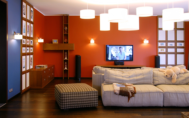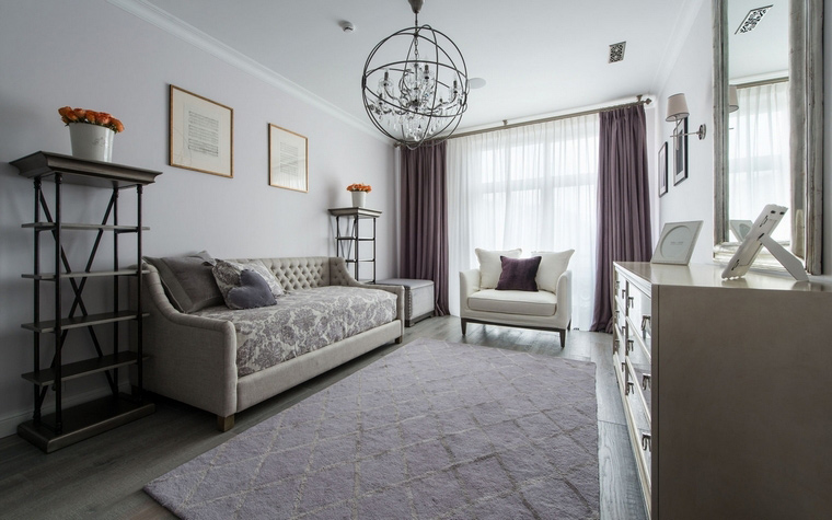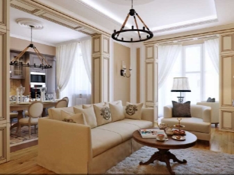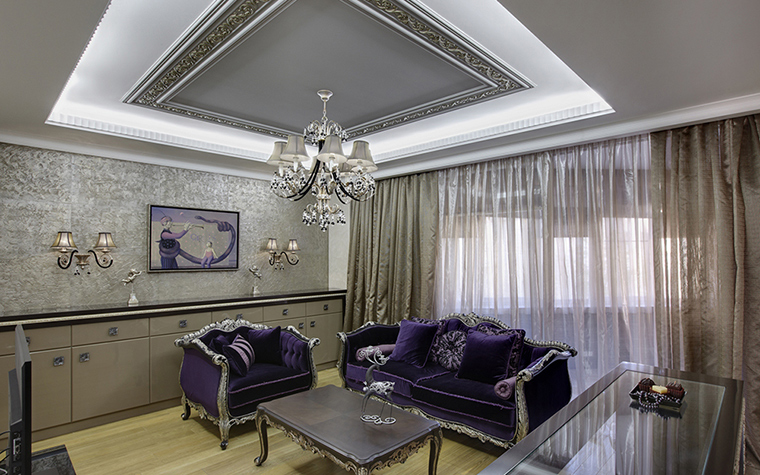 Stil neoklassisch mehr an moderne Stadtwohnungen angepasst. Es zeichnet sich durch große Einfachheit, die Fülle von natürlichem Licht aus.Um diesen Effekt zu erzeugen, sind sie Einbauleuchten in Gipskartonnischen.