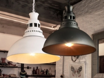 - Lampen im Industriestil mit Metall-Lampenschirmen sind eine der beliebtesten Stillösungen von Designern für fast jedes Interieur.