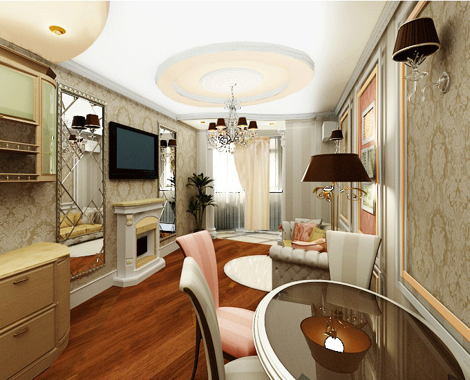 Räumlichkeiten in Amerikaner Style-Look geräumig und funktional durch die Beseitigung unnötiger Partitionen und Kleinteile.Sie kombinieren Country, Art Deco und Modern, so dass Accessoires in fast jedem Stil gewählt werden können. In der Regel ist der Kronleuchter die semantische Achse des Raumes, also sollte er auffällig und massiv sein. Es ist nicht verboten, zusätzliche Lichtquellen zu verwenden.