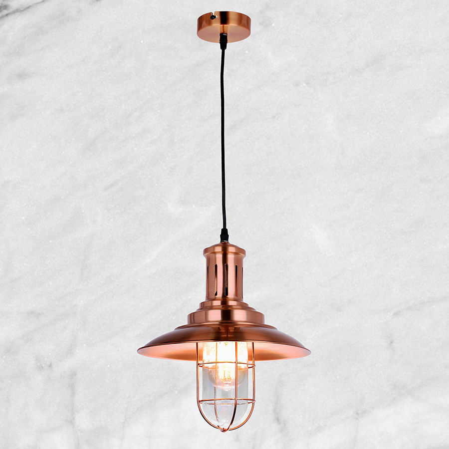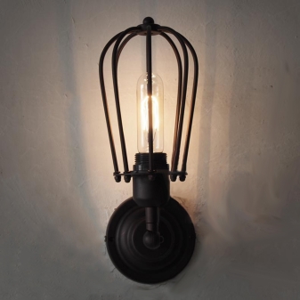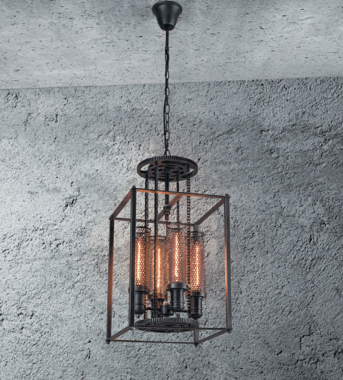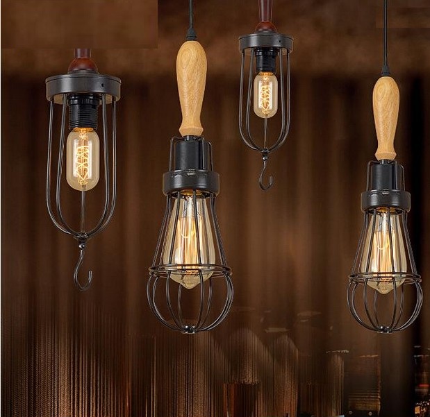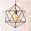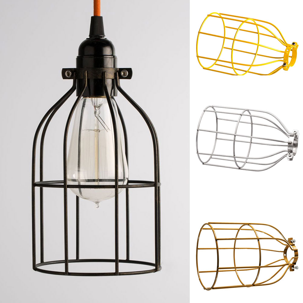 - Drahtkäfig, getragen an abgehängten Retro-Lampen;