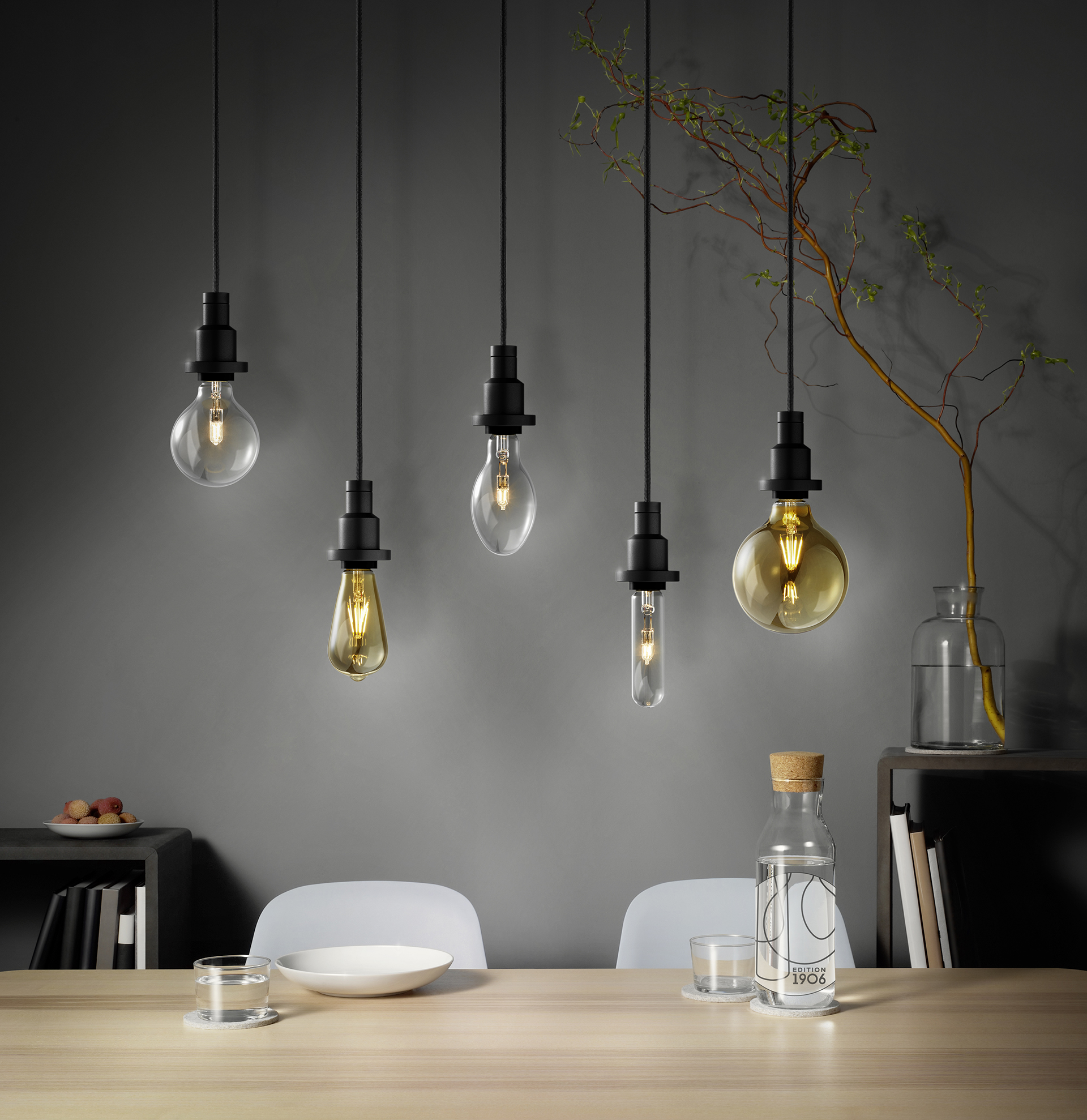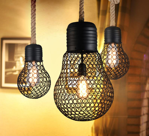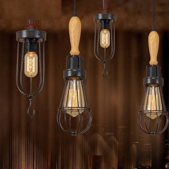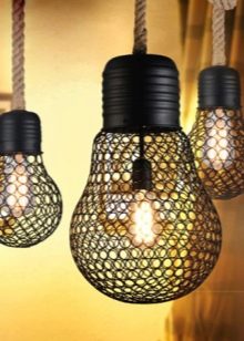 - Auf der Suspension. Edisons Glühbirne auf einer Kabelaufhängung ist das beliebteste Modell des Industriedesigns.