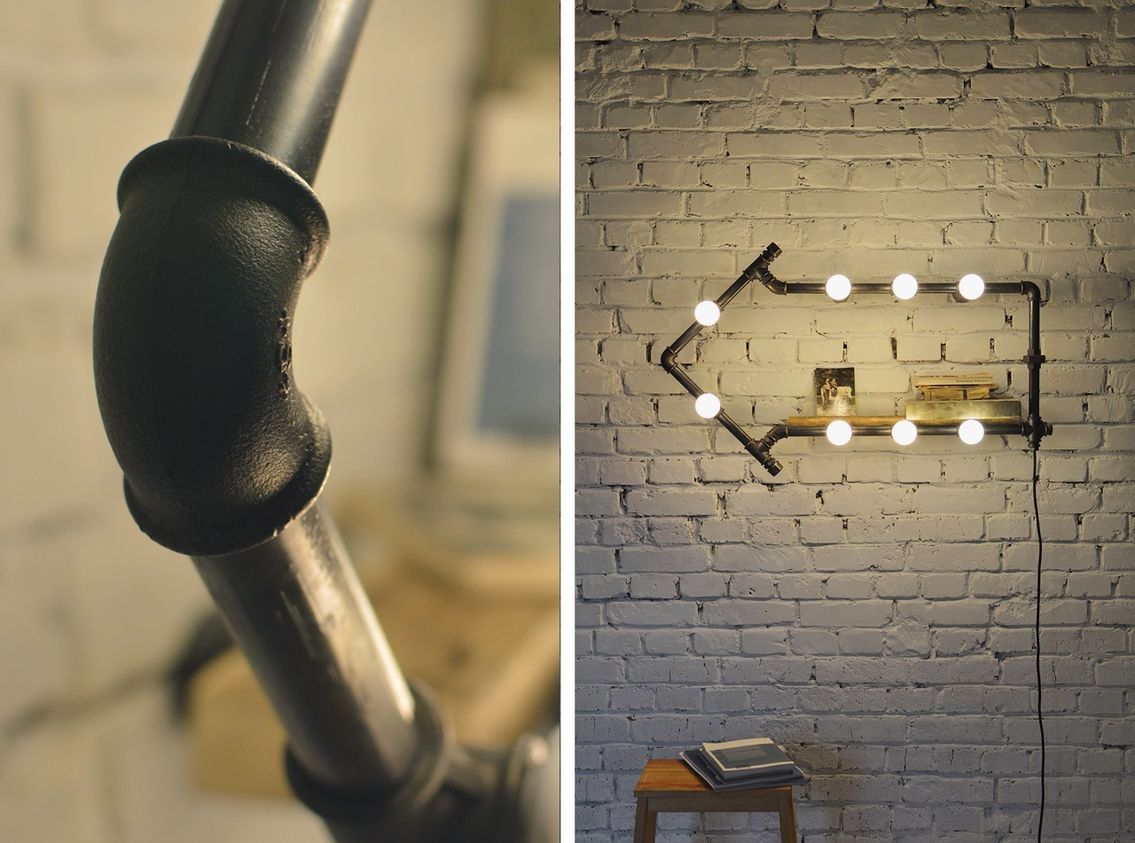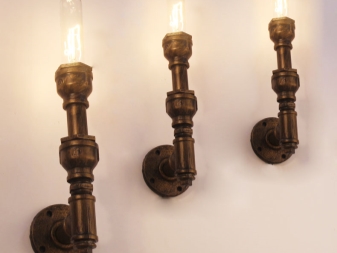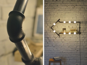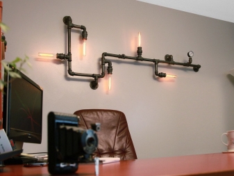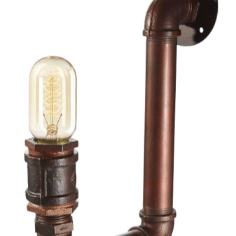 Rohre können aus Polypropylen und Kupfer bestehen. Der Spielraum für Kreativität ist groß, denn im Verkauf gibt es viele Rohre und Fittings, die zu ihnen passen. Details für den Bau einer Wandleuchte für die Beleuchtung in Form einer Batterie können im Sanitärgeschäft erworben werden. Um aus einer Röhre eine Lampe zu machen, müssen Sie eine Möglichkeit finden, eine Glühbirne an der Struktur anzubringen.Anweisungen dazu finden Sie in diesem Video.