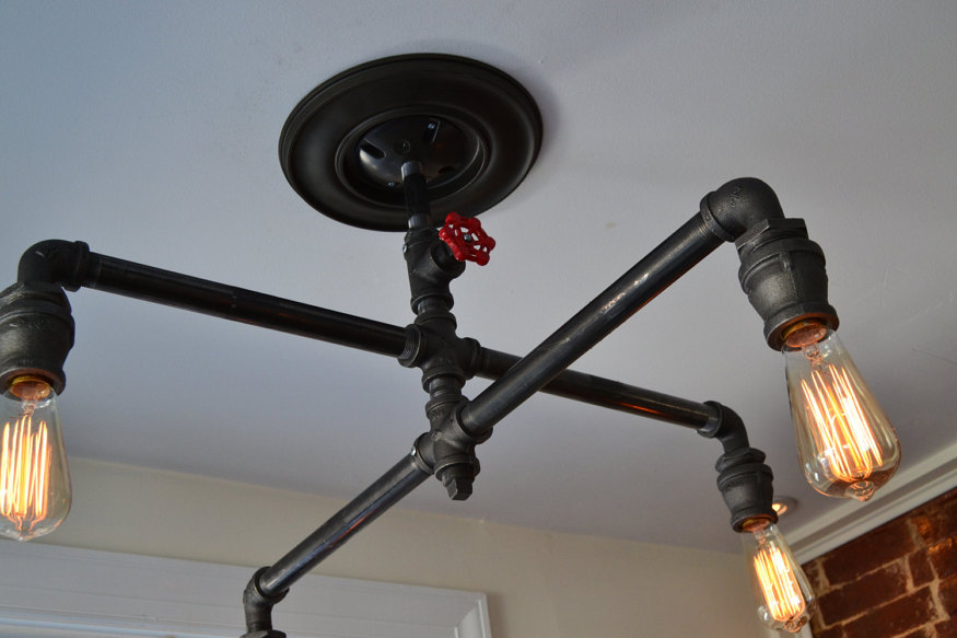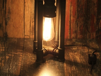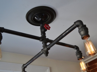 Metallmodelle von modernen Herstellern sind hauptsächlich von zwei Arten - es ist Chrom-Eisen und schwarz lackiertem Metall, gelegentlich gibt es Proben für Gusseisen gemalt, aber es ist natürlich kein echtes Gusseisen. Formen von Metallschirmen: eine Platte und eine Halbkugel. Heute ist die Nachahmung von Rohrleitungen der letzte Erfolg im industriellen Design von Räumen. Rohre bei der Herstellung von Lampen - das ist das Know-how des Stils. Die Pioniere des Formats waren offensichtlich Glühbirnen, die an Batterien befestigt wurden, so dass Entwürfe aus langen PVC-Rohren mit eingebauten Kappen für Glühbirnen die industrielle Dekoration von US-Fabriken nachahmen.