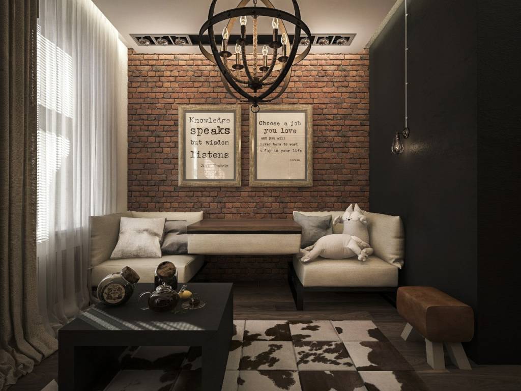 Einer der Vorteile von Loft-Interieurs ist die Möglichkeit, einen Raum in wenigen Schritten einzurichten und ein Minimum an Geld auszugeben. Erstellen Sie ein Mauerwerk an der Wand oder imitieren Sie es mit Tapeten und hängen Sie die erste Retro-Glühbirne an der Schnur. Die Basis des Interieurs in einem modischen Stil "Loft" gelegt.