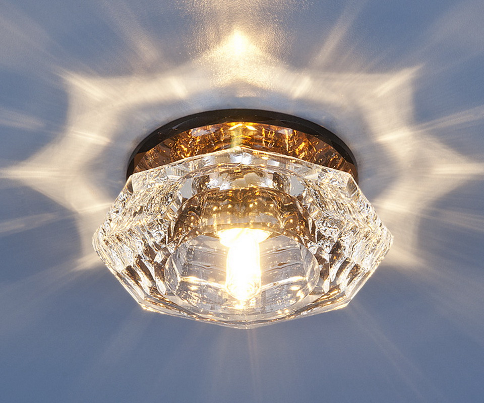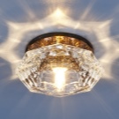 - "Glam". Trotz der Budgetkosten haben diese Lampen ein interessantes Design und eine subtile Ausführung. Sie sehen aus wie ein facettierter Edelstein, der in eine Metallschale mit einem Muster eingelassen ist. An den Rändern des Glases spielend, gibt das Licht dem Innenraum ein dekoratives Aussehen.