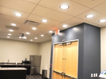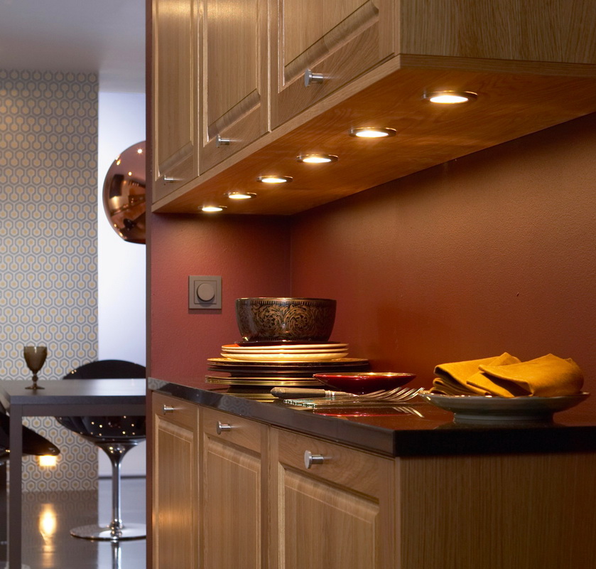 - Gepunktet Leuchten (Downlights) übernehmen die Funktion der Beleuchtung einzelner Bereiche. Notwendig für die Platzierung von Lichtakzenten im Innenraum, Zonierung und Volumenbildung.