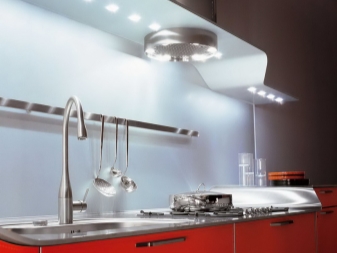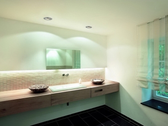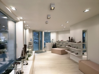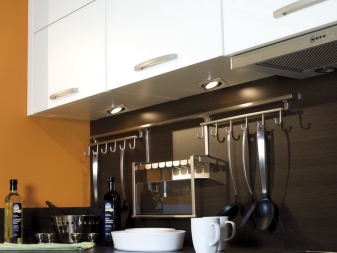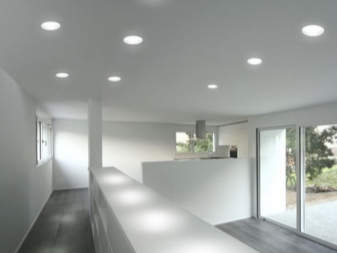 Overhead oder externe, haben kleine Abmessungen und von der Seite aussehen wie teilweise Einbauleuchten, aber sie sind auf festen Oberflächen installiert. Solche Lichtquellen sind praktisch in dem Fall, wenn die kleinen Abmessungen des Raumes keine Montage von falschen Oberflächen erlauben, die wertvolle Zentimeter aus dem Raumbereich entfernen. Eine weitere Option ist eine Designidee, für die externe Lichtquellen besser geeignet sind.