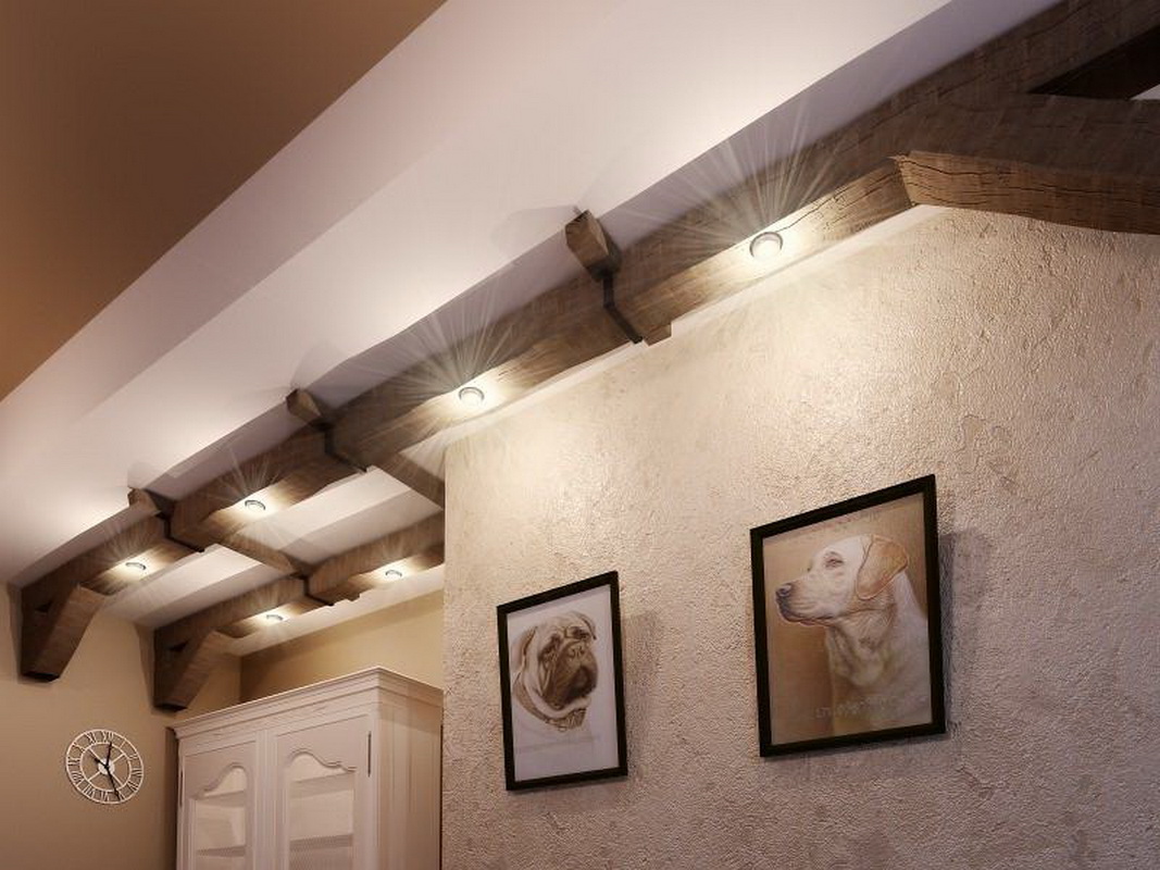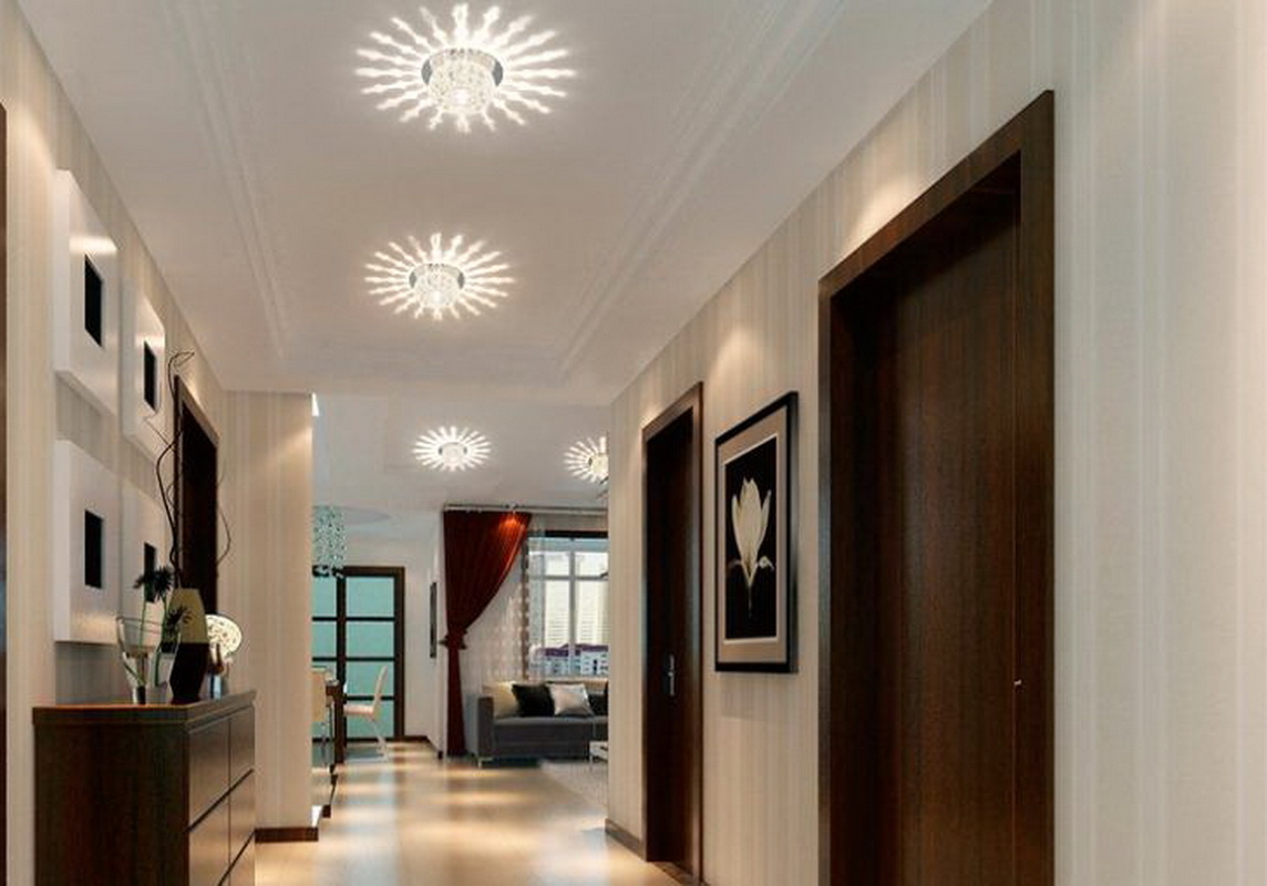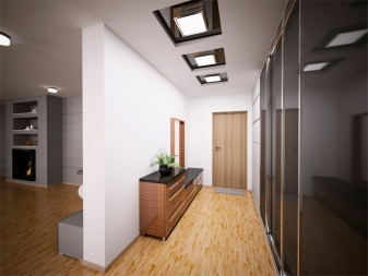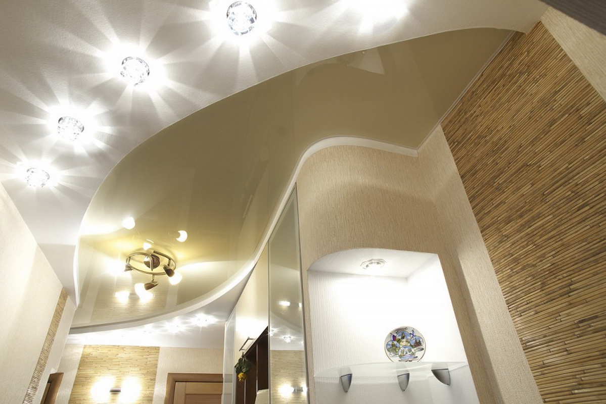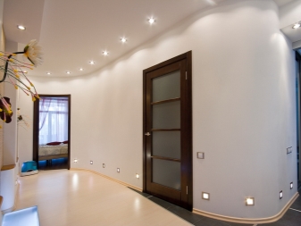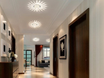 Spotlights - ein einzigartiges Werkzeug für die Gestaltung des Inneren des Hauses. Im Flur und im Flur mit ihnen können Sie das notwendige Licht und komplizierte Muster an der Decke schaffen, das nicht nur den langweiligen Raum diversifiziert, sondern auch den schmalen und langen Raum optisch erweitert.