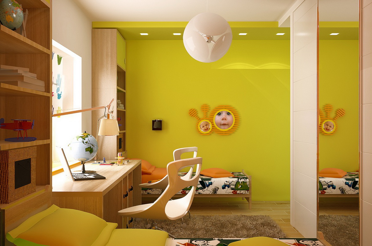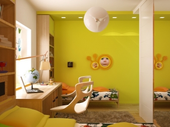 Eine besondere Kategorie von Einbauleuchten sind Profilbronzelampen. Diese lange Leuchtröhre kann in jeder Form, kombiniert mit LED-Streifen und farbiger Beleuchtung, an der Decke, den Wänden, dem Boden und den Möbeln angebracht werden. Sie geben dem Kinderzimmer ebenso das Aussehen eines Raumfahrzeugs und umrahmen den Spiegel des Frisiertisches.