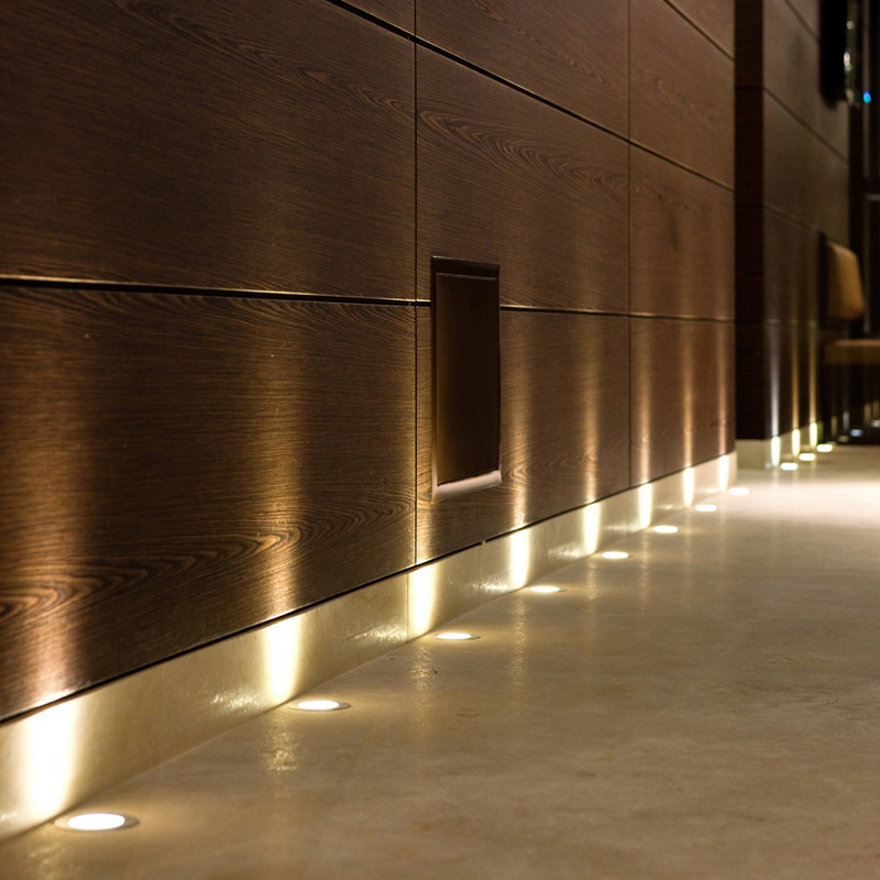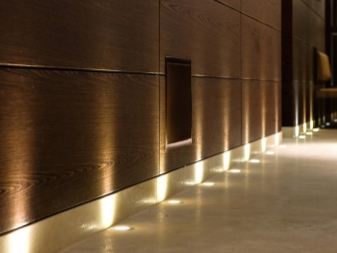 Leuchten für den Einbau in die Decke und in die Wand unterscheiden sich in ihren Eigenschaften und ihrem Aussehen wenig voneinander. Die wichtigste Voraussetzung für sie - der minimale Grad der Erwärmung, weil die Spanndecke keine hohen Temperaturen verträgt, und andere Materialien sind in dieser Hinsicht launisch. Aber die Geräte, die installiert werden, um den Boden zu beleuchten, sollten mit ihm eine vollkommen glatte Oberfläche schaffen und aus extrem haltbaren, nicht kratzenden Materialien bestehen. Zu derselben Kategorie können die Lampen für die Treppen, die Beleuchtungsstufen bereitstellen, zurückgeführt werden.