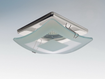 - "Würfel". Wie der Name andeutet, hat die Decke die Form eines Würfels und eine runde Diode ist darin vertieft. Kristallklares Glas glättet sanft die Ecken des Würfels und die klare, bernsteinfarbene Umrandung erfüllt das Licht mit Wärme. Kombinieren verschiedene Modelle von "Cubes" gibt ein noch interessanteres Ergebnis.